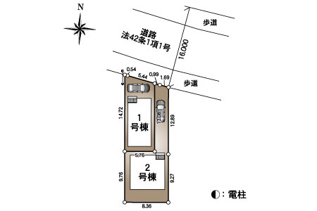 | 接道状況 | 北東側16m公道 | 延床面積 | ①83.42m²、②89.50m² |