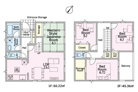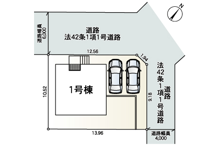 | 接道状況 | 北西6.0m、北東4.0m公道 | 延床面積 | 95.58㎡ |
