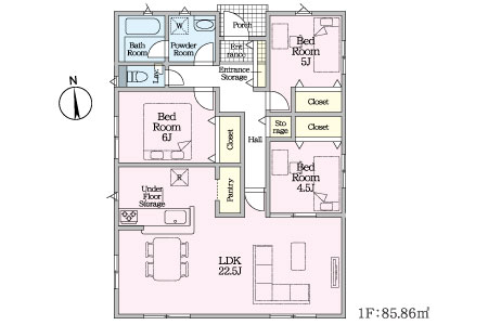 1号棟:平屋×22.5帖LDK×パントリーの希少性♪