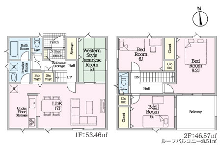 2号棟:4LDK+9.2帖主寝室+ルーフバルコニー。