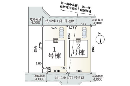 | 接道状況 | 4.0m公道 | 延床面積 | 1号棟 85.86㎡、2号棟 100.03㎡ |