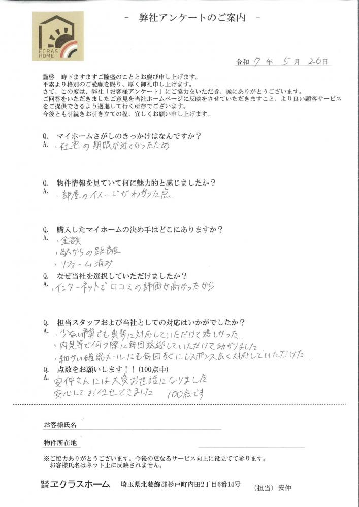 お客様の声 | 杉戸町周辺の新築・不動産のことならエクラスホーム