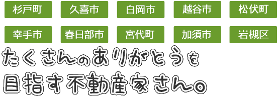 エクラスホームではお客様の大事な資産である不動産の売却も対応させて頂いております。相続などの相談にも対応しております。 杉戸町・宮代町・久喜市・春日部市・岩槻区・越谷市・幸手市・加須市の不動産の売却をご希望される方はお気軽にご相談ください。