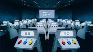大きな3択ボタンのある部屋で早押しクイズがあったり、