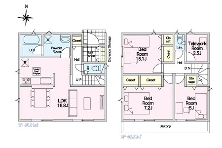 1号棟…2SLDK。居室としても使える納戸完備。またリビングにも収納があって便利です!