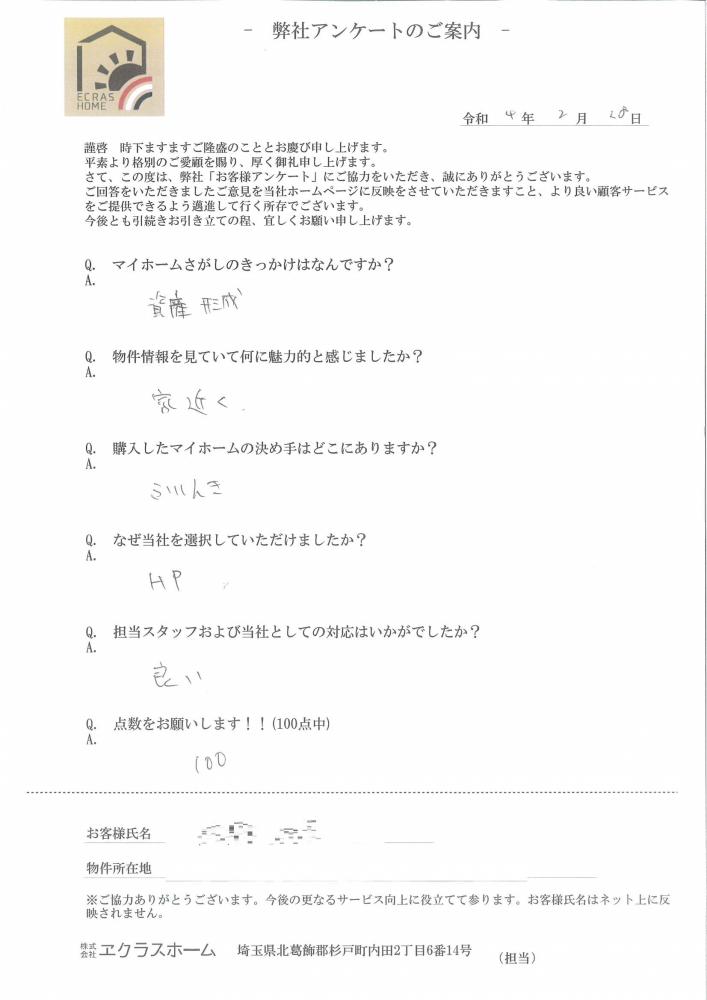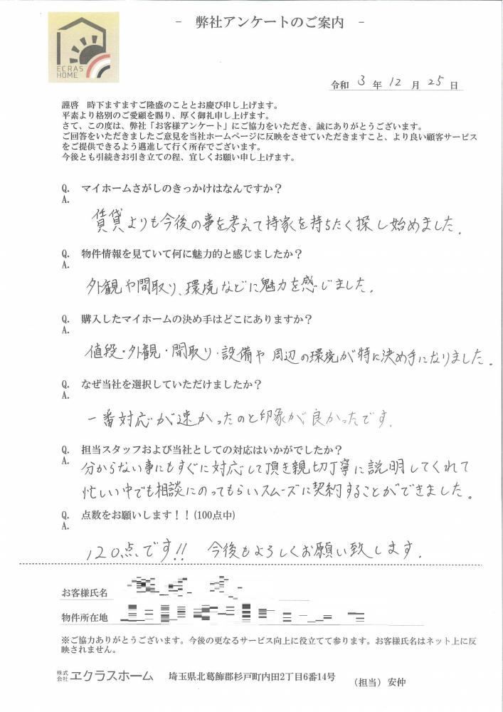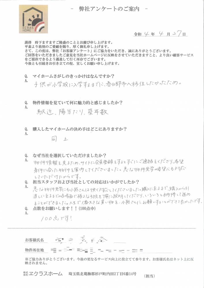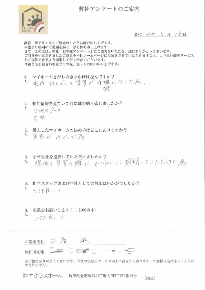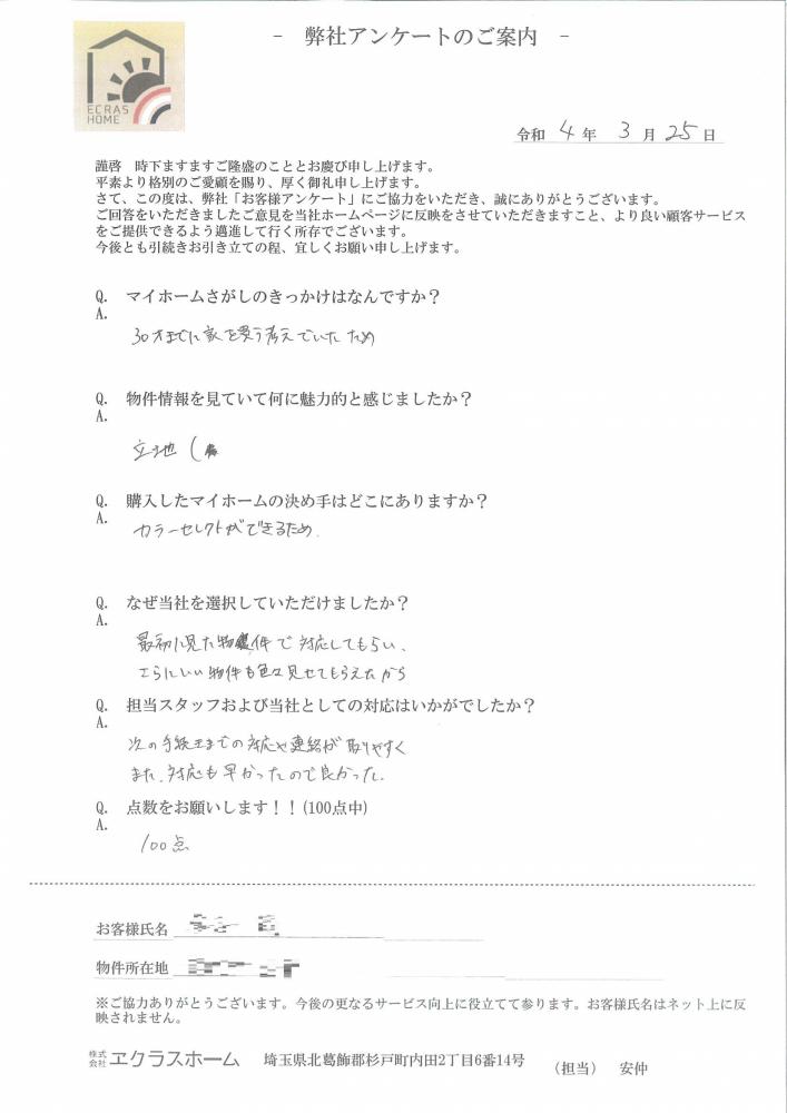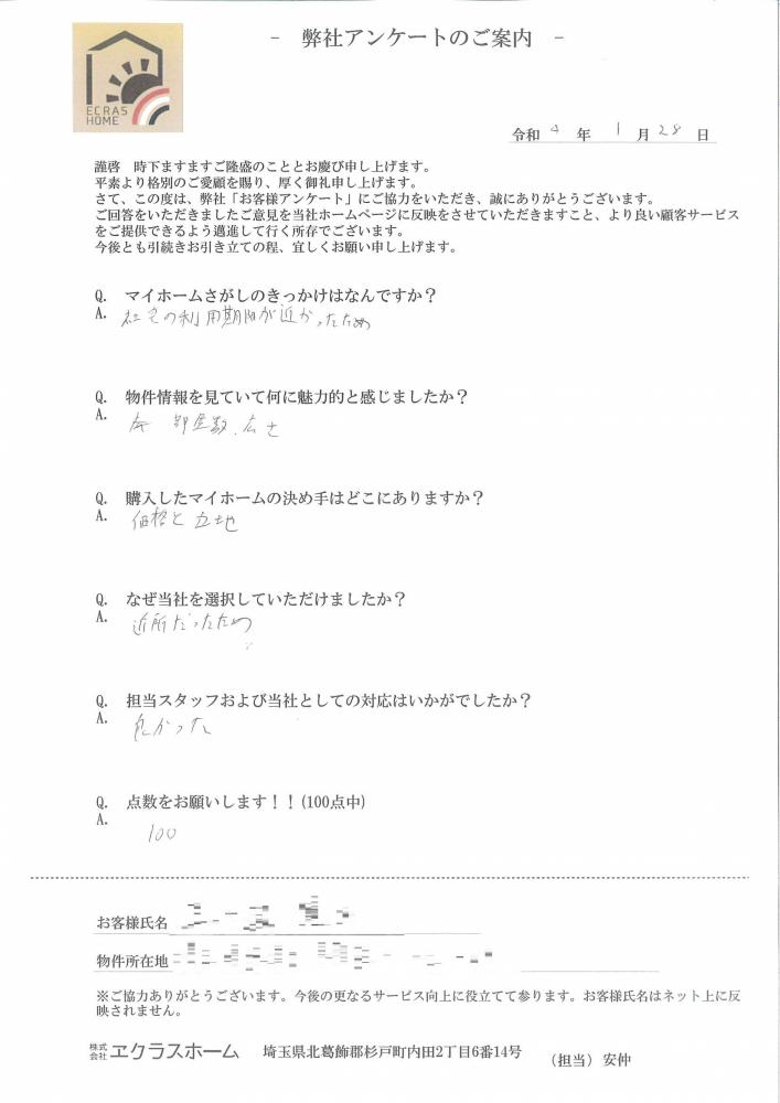 お客様の声 | 杉戸町周辺の新築・不動産のことならエクラスホーム