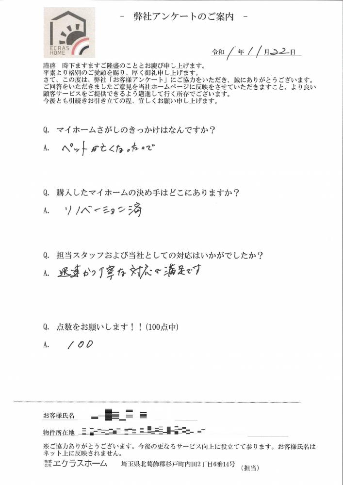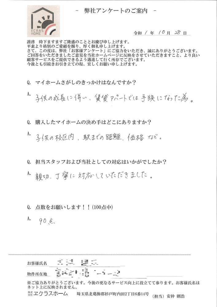 お客様の声 | 杉戸町周辺の新築・不動産のことならエクラスホーム