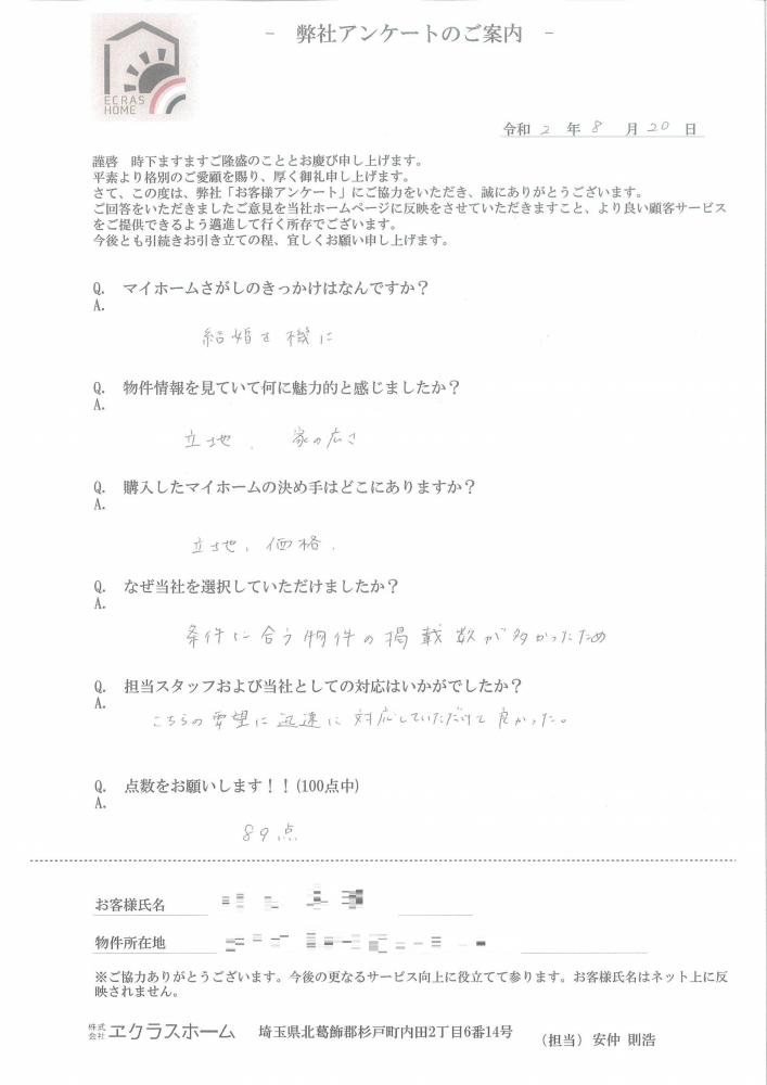 結婚を機にマイホーム探しを始め、立地、価格、家の広さなど条件に合う物件だってので購入を決めました!!『杉戸町』新築一戸建て | 杉戸町周辺の新築・不動産のことならエクラスホーム