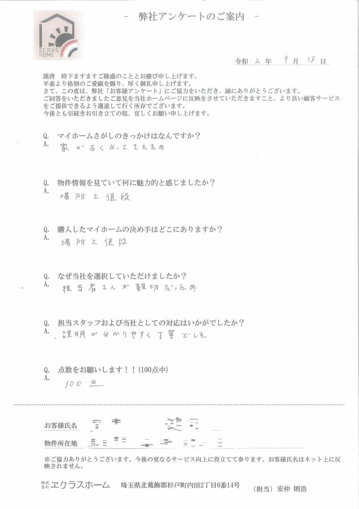 現在の自宅が古くなってきたこと、ほぼ、生活環境が変わらず慣れ親しんだ場所で安心して購入を決断できた!!『春日部市』新築一戸建て | 杉戸町周辺の新築・不動産のことならエクラスホーム