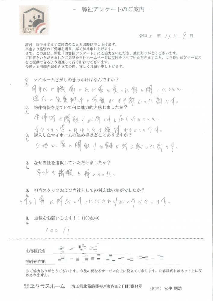 職場の同僚がマイホームを購入した話を聞いていたことと、現在の賃貸の家賃がやや高い為、住宅の購入を決めました!!『蓮田市』新築一戸建て | 杉戸町周辺の新築・不動産のことならエクラスホーム