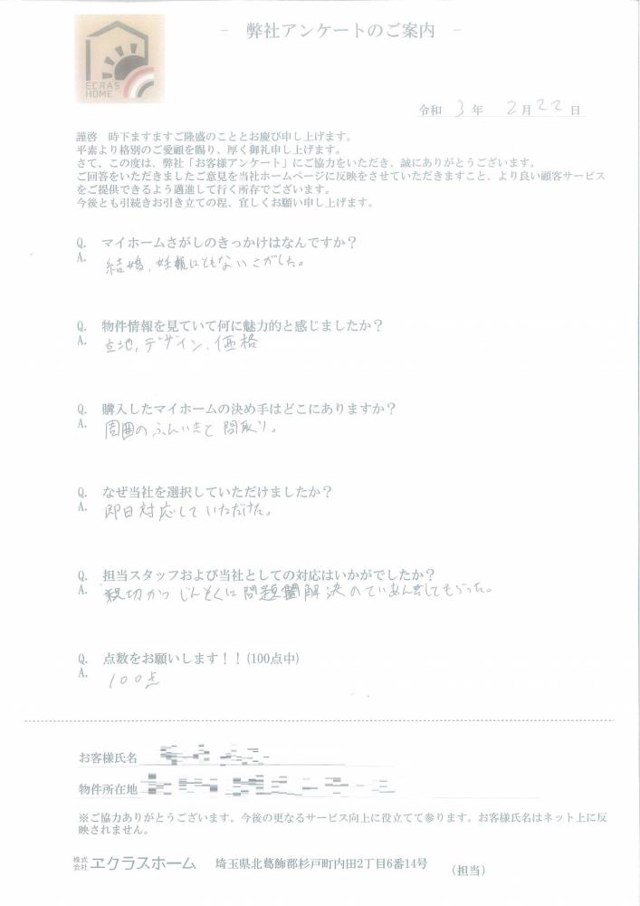 ご結婚を機にお住まい探しを始められて、たくさんの物件をご見学されてきた中で、ご条件に合った物件をご紹介できたことを大変嬉しく思っております。