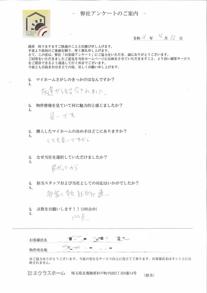 友達からマイホーム購入を勧められたのがきっかけで、庭の広さ、駐車場の広い家を探していました!!人が集まれるマイホームが欲しかった!!『幸手市』新築一戸建て | 杉戸町周辺の新築・不動産のことならエクラスホーム