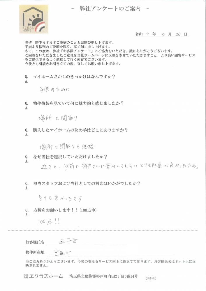 子供の通学学区で、一戸建て購入を考えていました!住環境が良く安心して購入をすることが出来ました!!『宮代町』新築一戸建て | 杉戸町周辺の新築・不動産のことならエクラスホーム