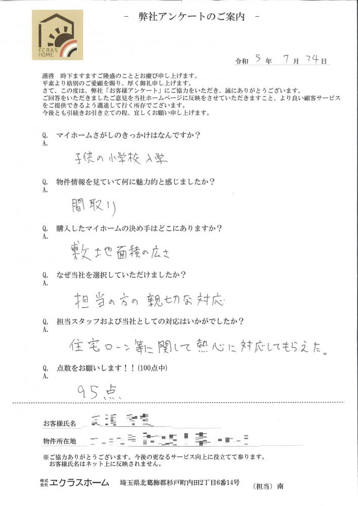子供の小学校入学を控えて、現在のコミュニティを大切にエリアを絞ったマイホーム探し。『さいたま市岩槻区』新築一戸建て