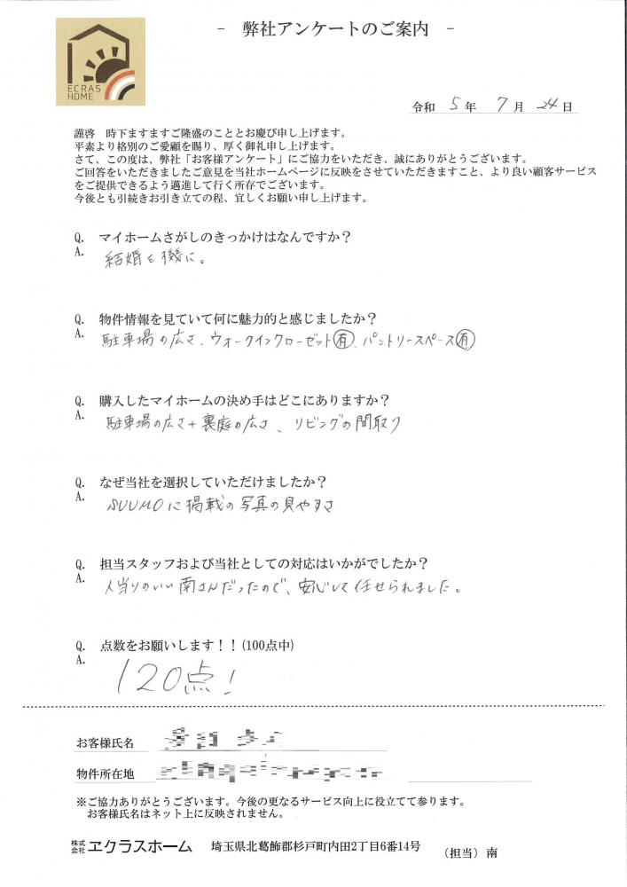 ご主人様、奥様のご協力を得て無事にお引渡し出来てほっとしております。