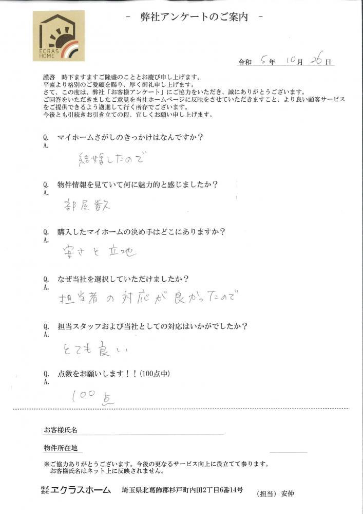 結婚したことでマイホーム探しを開始。一度、中断しましたが再開後に価格、立地も含め条件に合致する物件を購入することができた。『加須市』新築一戸建て | 杉戸町周辺の新築・不動産のことならエクラスホーム