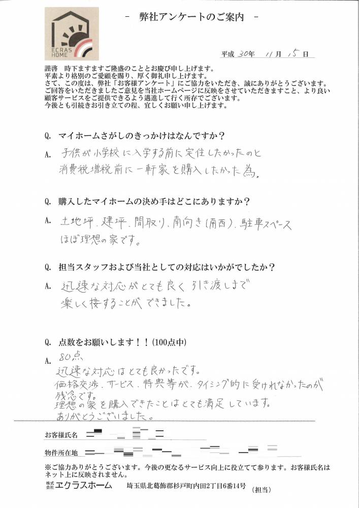 迅速な対応がとても良く引き渡しまで楽しく接することができました。『北葛飾郡杉戸町』新築一戸建て | 杉戸町周辺の新築・不動産のことならエクラスホーム