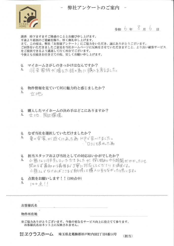 奥様の実家から近い事もあり、弊社をご利用いただきありがとうございます。