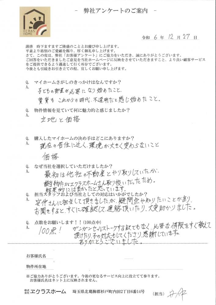 今後、賃貸も不透明だと不安を感じてマイホーム探し計画を開始。子供の部屋が必要と感じたこともあり学区内で希望の物件に出会えて購入を決断した。『宮代町』新築一戸建て | 杉戸町周辺の新築・不動産のことならエクラスホーム