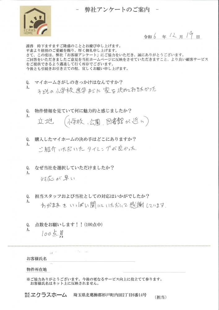 希望する小学校への入学を考えて学内内でのマイホーム探しを計画。限られた情報の中で立地やタイミングが合致したので購入を決断した。『宮代町』新築一戸建て | 杉戸町周辺の新築・不動産のことならエクラスホーム