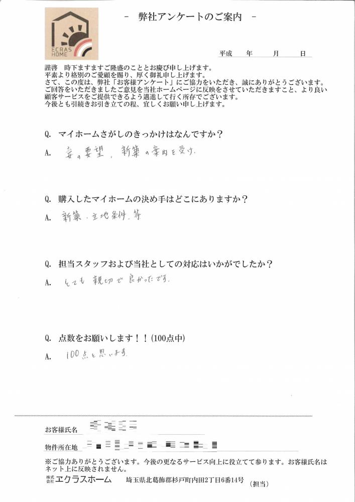 妻の要望を受けて、新築一戸建てを探しはじめた際に現在の住まいから生活環境が変わらず理想の物件があった為。『蓮田市』新築一戸建て | 杉戸町周辺の新築・不動産のことならエクラスホーム