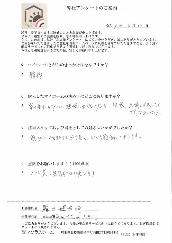 区画が綺麗に整備された街並みと商業施設が徒歩圏にあり、環境がすごく気にいったことと、生活のイメージがしっかりできたことが決め手となった!!『加須市』新築一戸建て | 杉戸町周辺の新築・不動産のことならエクラスホーム