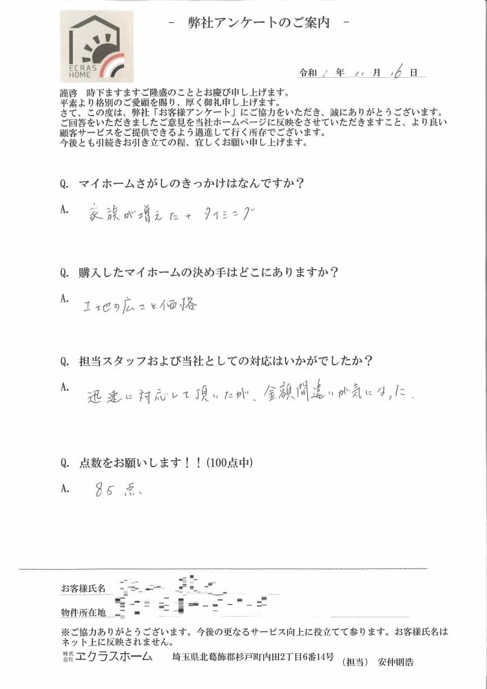 家族が増えたタイミングでマイホームを探していた。すごく土地が広く条件に合致したので決めました!!『宮代町』新築一戸建て | 杉戸町周辺の新築・不動産のことならエクラスホーム